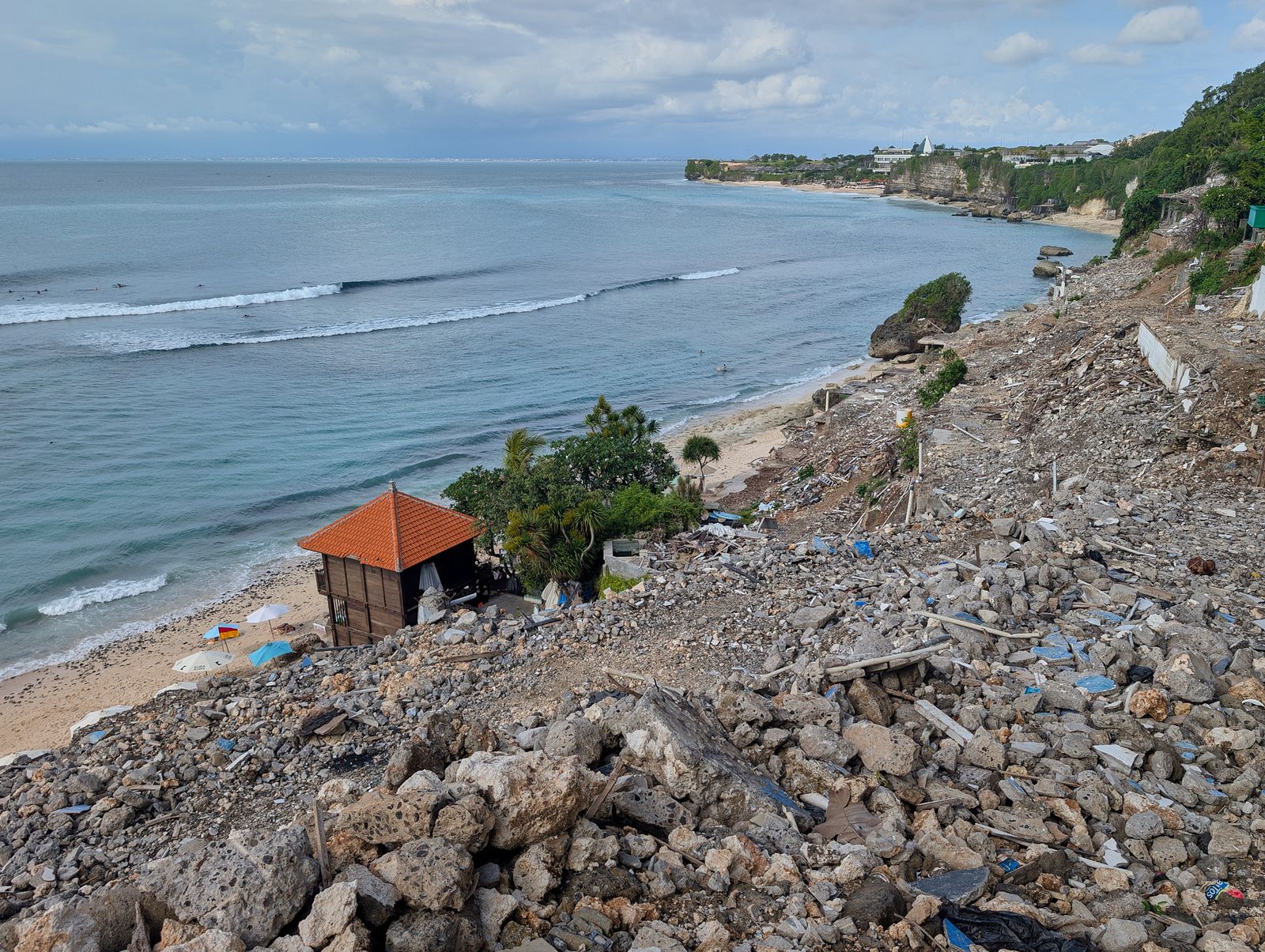 Except when we got there, it looked like a war zone. Like… what the hell happened? I googled it. Turns out back in July, the government announced that most of the buildings along the beach were illegal, so they bulldozed the whole thing. Restaurants, hotels, all of it. We still walked down, but the beach was covered in debris. Not exactly the dreamy tropical moment I had in mind.