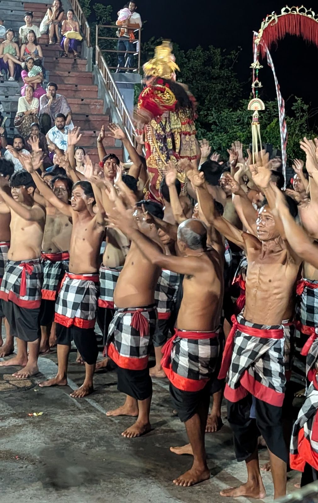 That night we did make it to the fire and dance show. Before the show, we spent a couple of hours exploring Uluwatu Temple. The place is crawling with wild monkeys. Signs everywhere warning you that they steal anything not bolted down. So we stuffed all our things in a bag. And sure enough, we watched them steal sunglasses, hats, phones, and one poor woman had a sandal stolen!