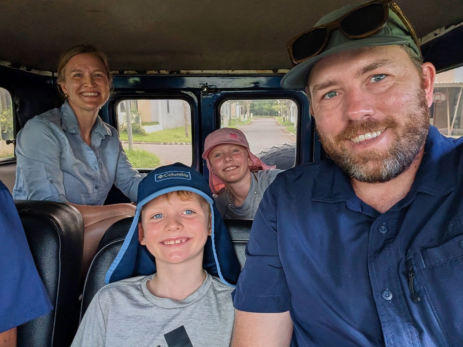 Our driver picked us up at 11 a.m. in a vintage Toyota Land Cruiser—older than any of us—and the kids were ecstatic. After about an hour, we stopped at a waterfall. The trail down was slippery from the rain, but it was a refreshing break, and the falls were surprisingly nice.