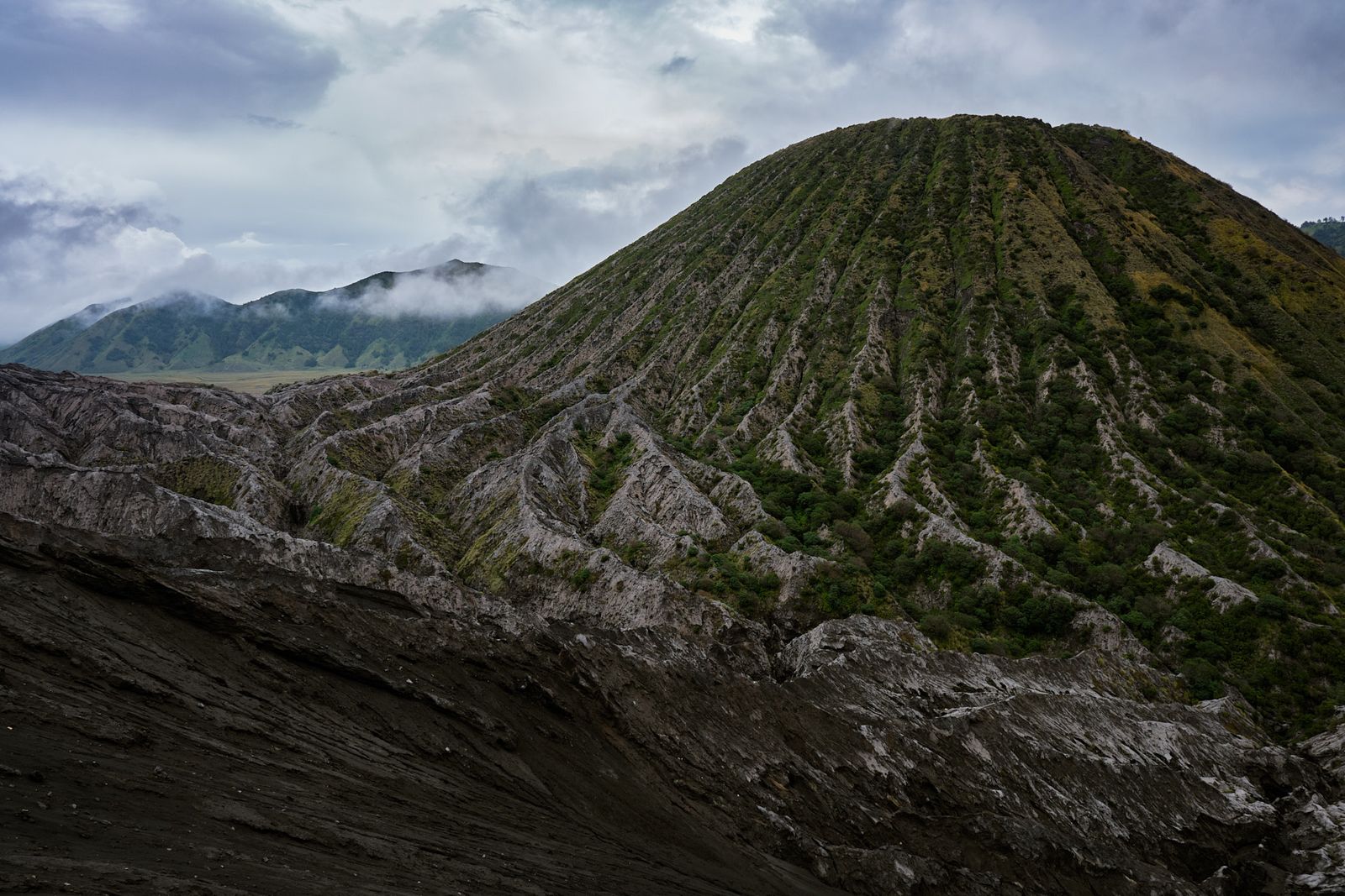 So we went for a sunset visit instead. Joey booked the tour, and I assumed it would mostly be a long drive to a viewpoint. It's the rainy season, the forecast looked terrible, and honestly, I expected we’d just end up inside a cloud. My expectations were low… and to top it off, I had been admiring the wrong mountain in all the photos. I had no idea what Bromo actually looked like.