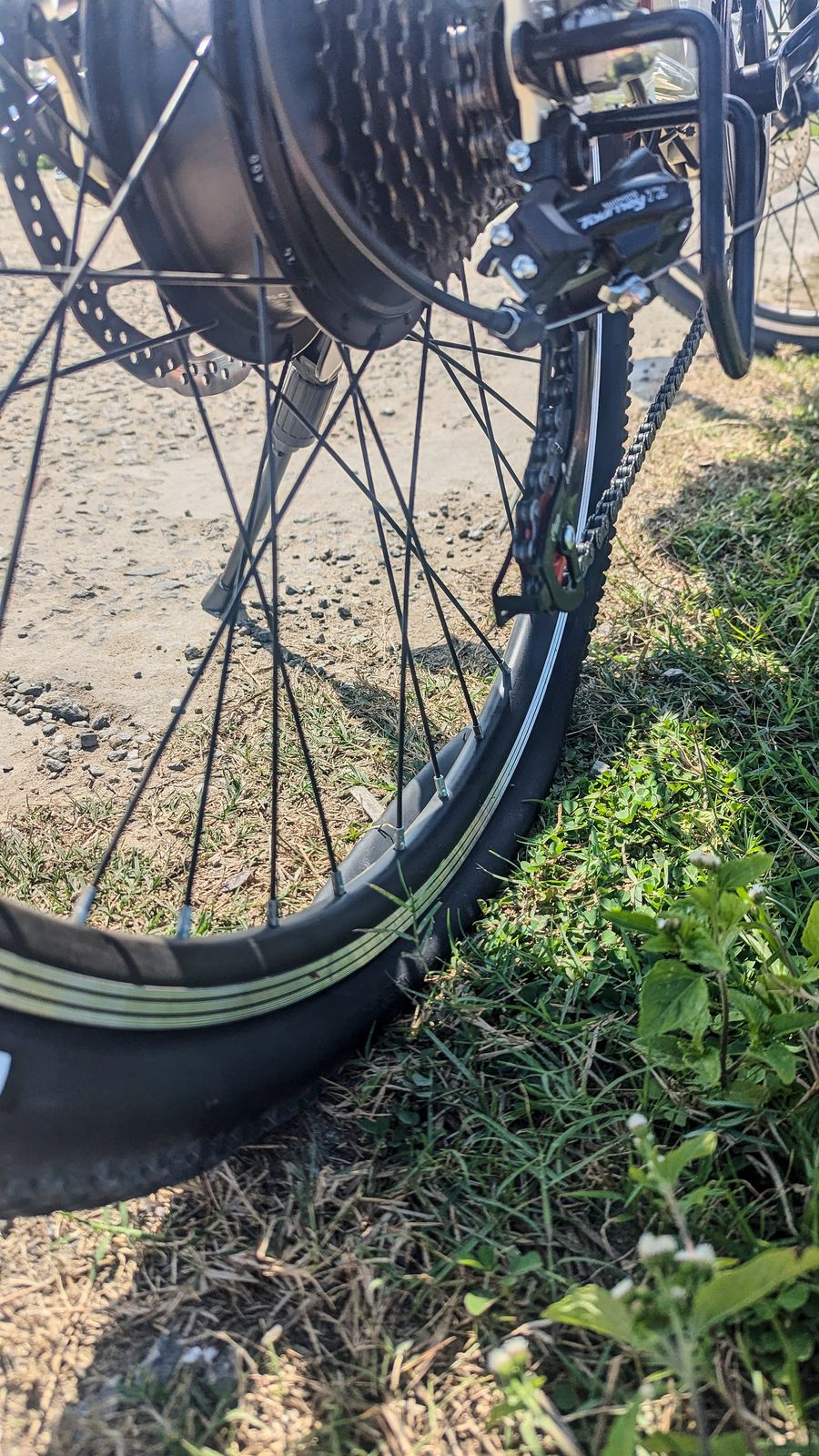 Not long after, another scooter appeared — this time with a man somehow holding an entire electric bike on the back while driving. Yes. That was our guy. He swapped the bikes like it was the most normal thing in the world and off we went.