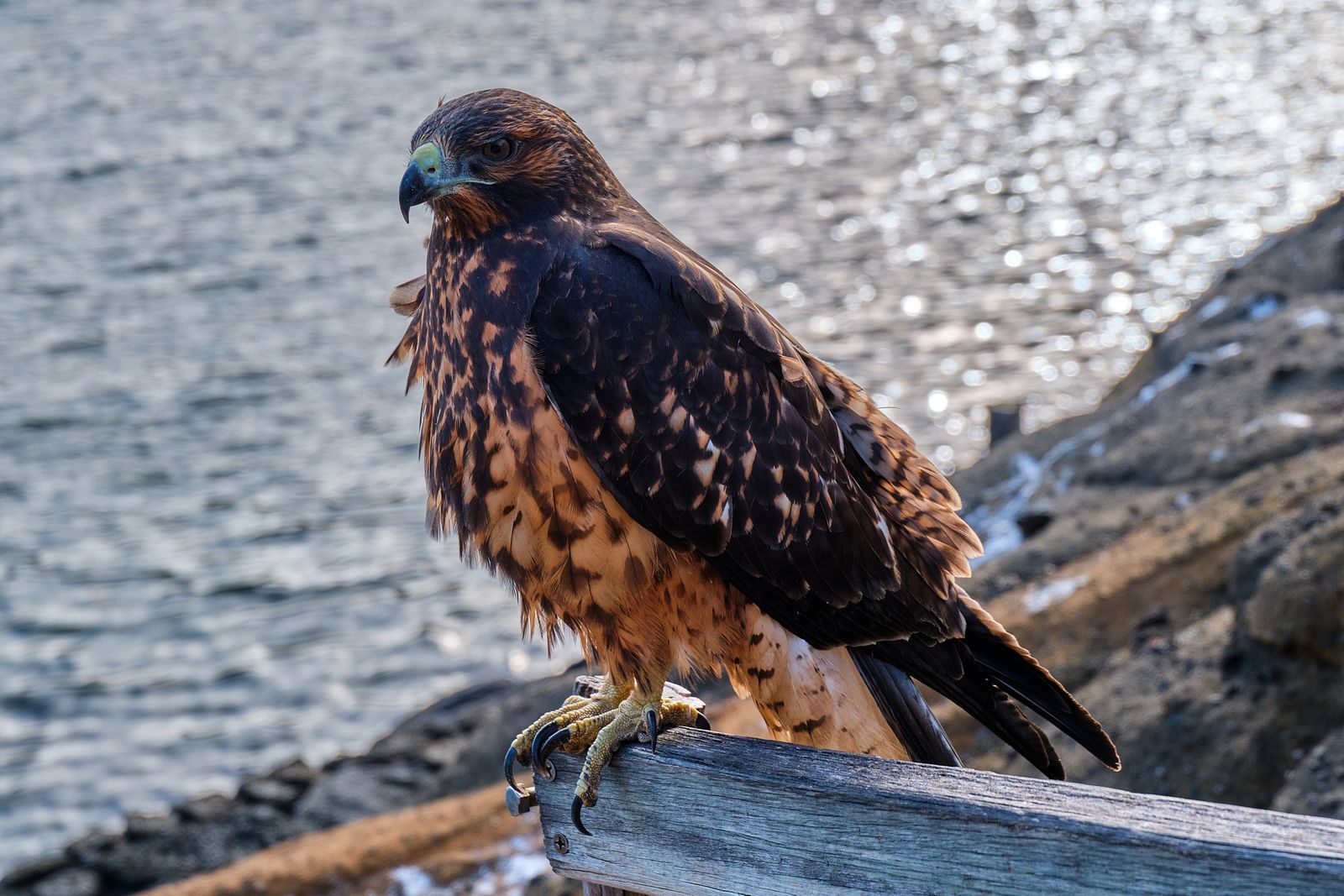 On one hike, a Galapagos hawk nearly landed on Hannah’s head, then mine. It settled for a railing 1.5 meters away. Amazing photo op, yes. But also: hawks are a lot bigger up close than you think.
