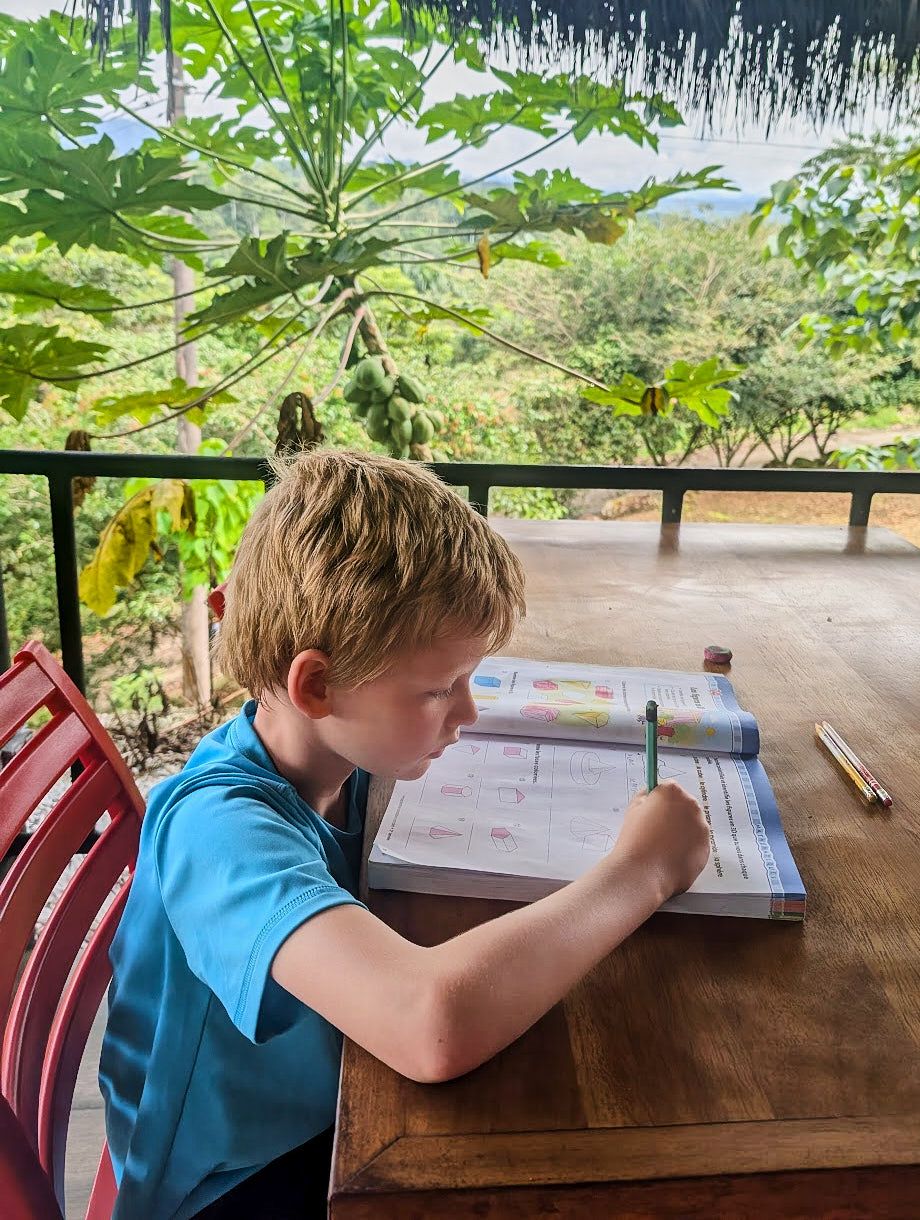 On our first day, we did… absolutely nothing. The kids decided to run their own “school day” for fun (yes, I was also suspicious at first). They made a schedule with “classes” and “recess” just like at home. We ended the afternoon with some river playtime and a family workout session. Pura vida! (Yes, I know we’re not in Costa Rica, but it fits.)