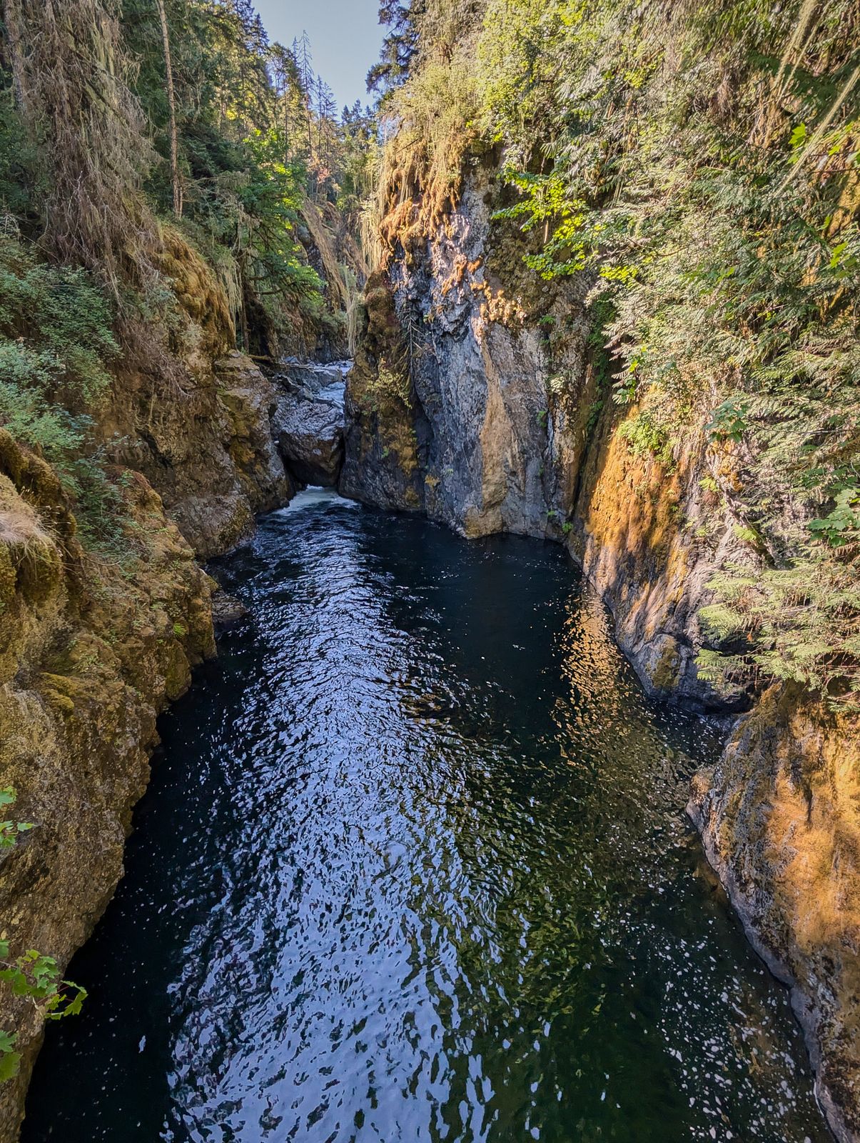 Next stop: Englishman River Falls Provincial Park. A quick walk took us to beautiful waterfalls, shady trees, and an icy-cold river that was perfect for swimming — if you enjoy temporary numbness! 😅