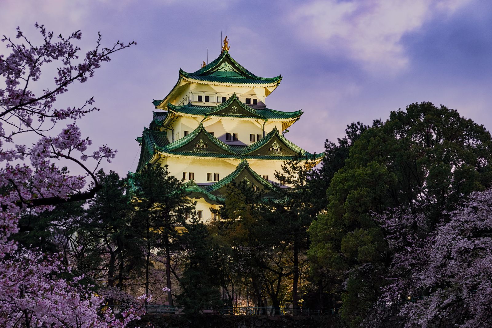 Then I spot electric scooters. Plan updated. To hell with walking. I roll up to the castle and the grounds are closed. But I find a decent spot with some sakura trees and start shooting anyway. Take a few photos, pack up, ready to leave. Then, right at 6:00pm, they turn on the castle lights. I unpack everything again and start shooting. It’s already better… but the sky is still dull.
