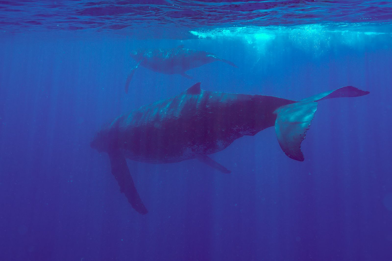 Day two: redemption. Sunshine, calmer seas, and an encounter with a mama and her calf. Emma was over the moon seeing the baby whale, while Teddy opted for whale-watching from the boat (zero nausea, 100% smarter choice). Joey and I even got to slip back in the water to hear a male singing. The sound vibrated through our bodies—goosebumps forever.
