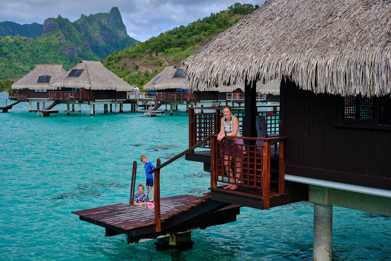 Since we skipped Bora Bora, we treated ourselves to one night in an overwater bungalow at the Hilton. Cue the panic when I realized our booking said “2 adults, 1 child.” Most bungalows max out at three guests… and we’re a family of four. After a nervous drive to the hotel to confirm, it turned out we were fine—phew!