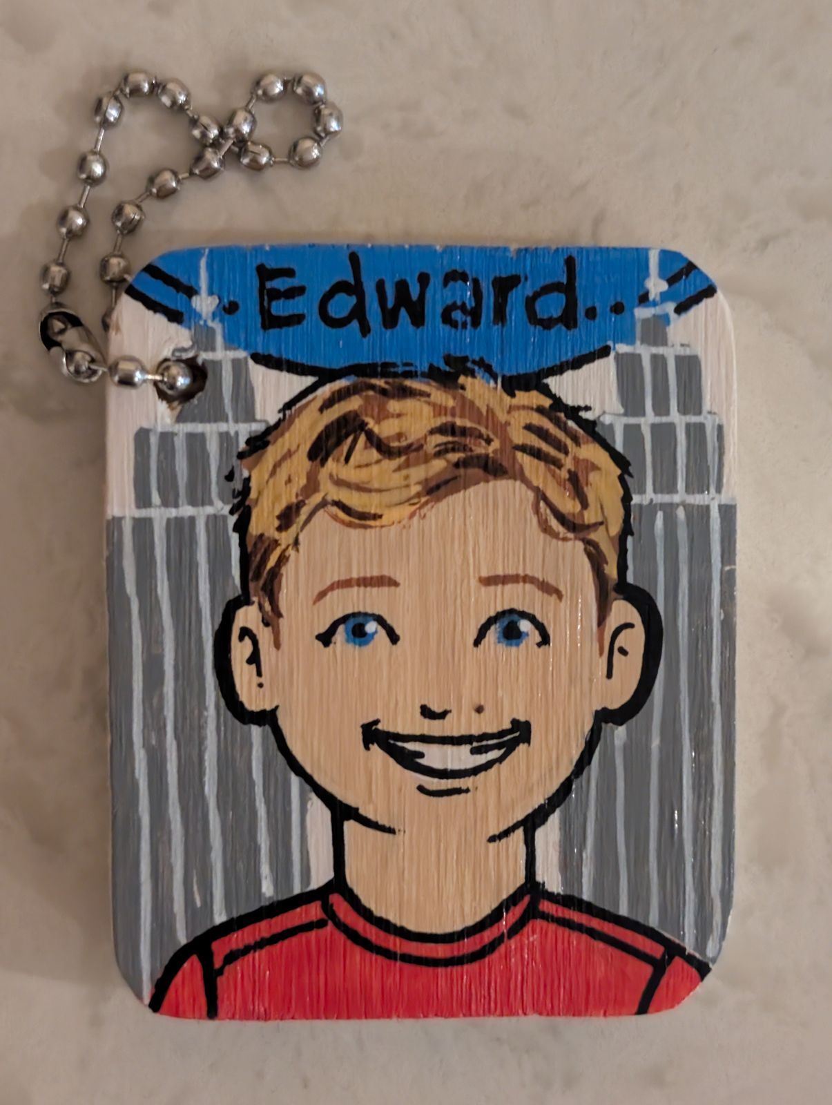 Teddy gave Mylène a keychain with a painting of his face on it. Absolute masterpiece.