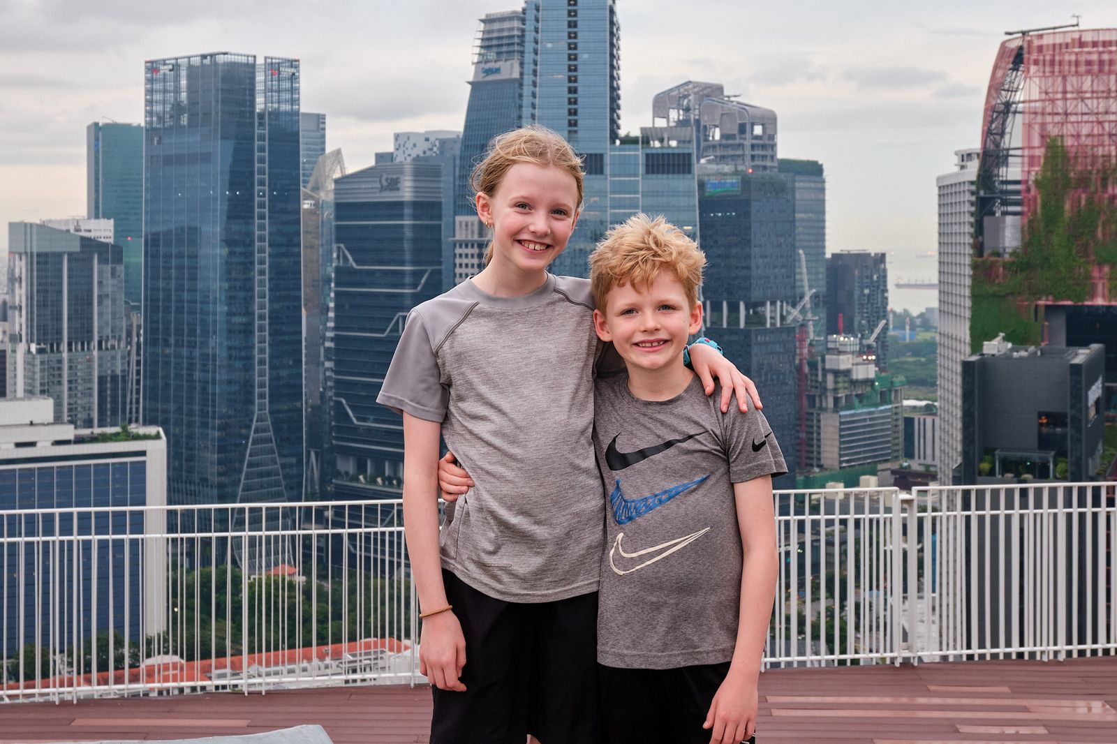 That night, we went to a rooftop I found online. It cost $6 per person, compared to $39 per person at Marina Bay Sands. The view was great and the place was almost empty. That was fun and the kids loved it. They found a huge snail, at least 15cm long. I have no idea how it got up 50 stories at… a snail's pace.