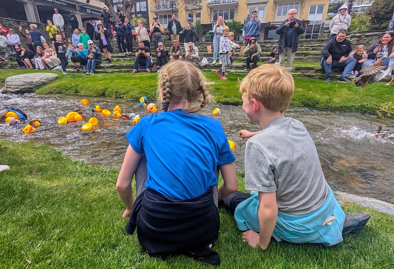Bellies full and spirits high, we strolled around town and stumbled upon… a rubber ducky race. Yes, you read that right — hundreds of tiny yellow ducks floating down the river like they meant business. Obviously, we had to join in. We cheered our duck on like it was competing in the Olympics… but sadly, it was more “last place legend” than champion. 🦆