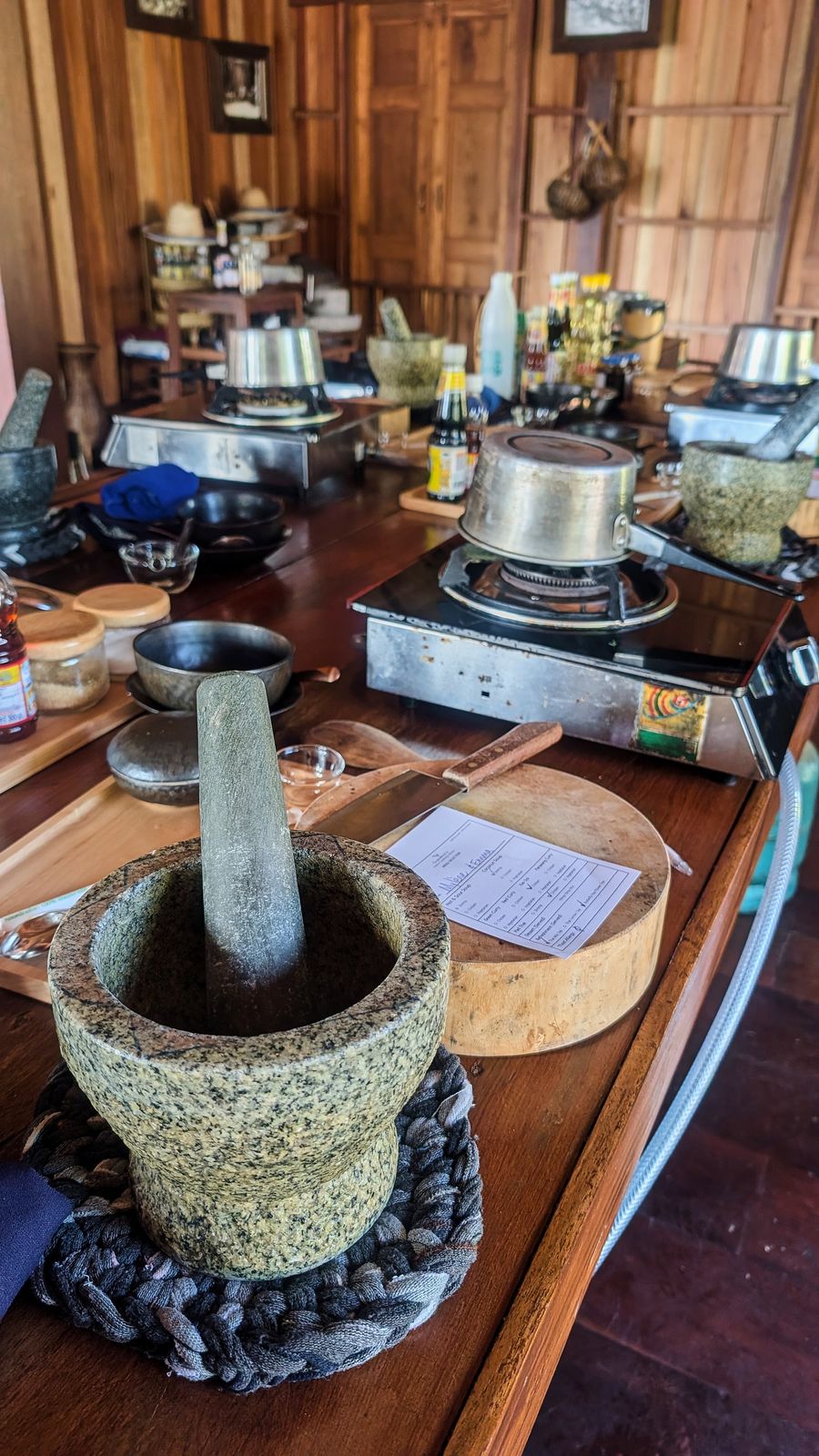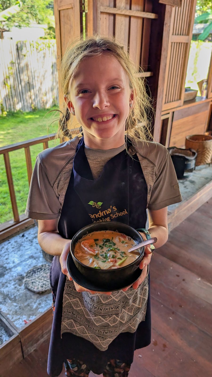 Honestly, the food we made was some of the best food we’ve had in Thailand so far. We made the red curry paste from scratch using a mortar and pestle, and we could dial back the sugar to our taste. Teddy completely surprised me by saying he liked the red curry, even though I made it spicy enough that the instructor asked me if I was Thai. Meanwhile, Emma thinks black pepper is too spicy.