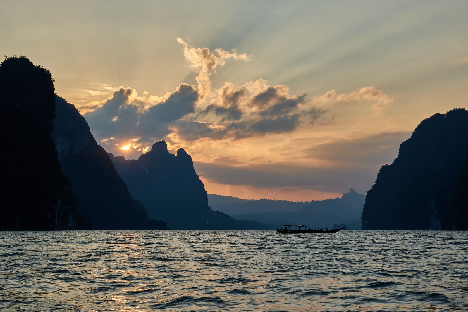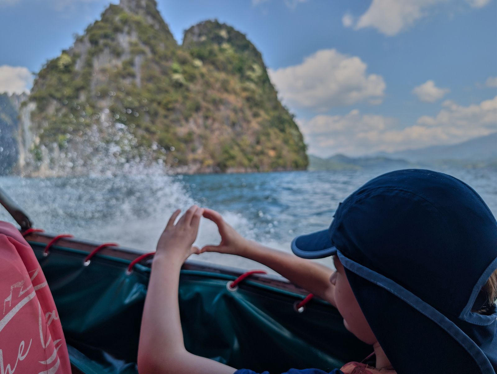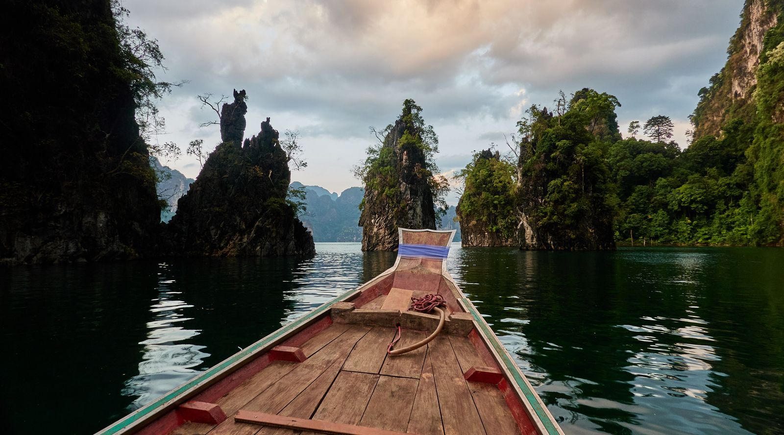 The park is centered around Cheow Lan Lake, a massive man-made lake created after a dam was built in the 1980s. Getting to our floating resort was an adventure in itself—a 45-minute ride in a long-tail boat. Picture this: sitting on what felt like a 2×4 plank, wind and waves splashing your face, the roar of a car engine in your ears. Not exactly spa vibes… but the scenery was so spectacular that we smiled, surrendered to nature, and enjoyed every second.