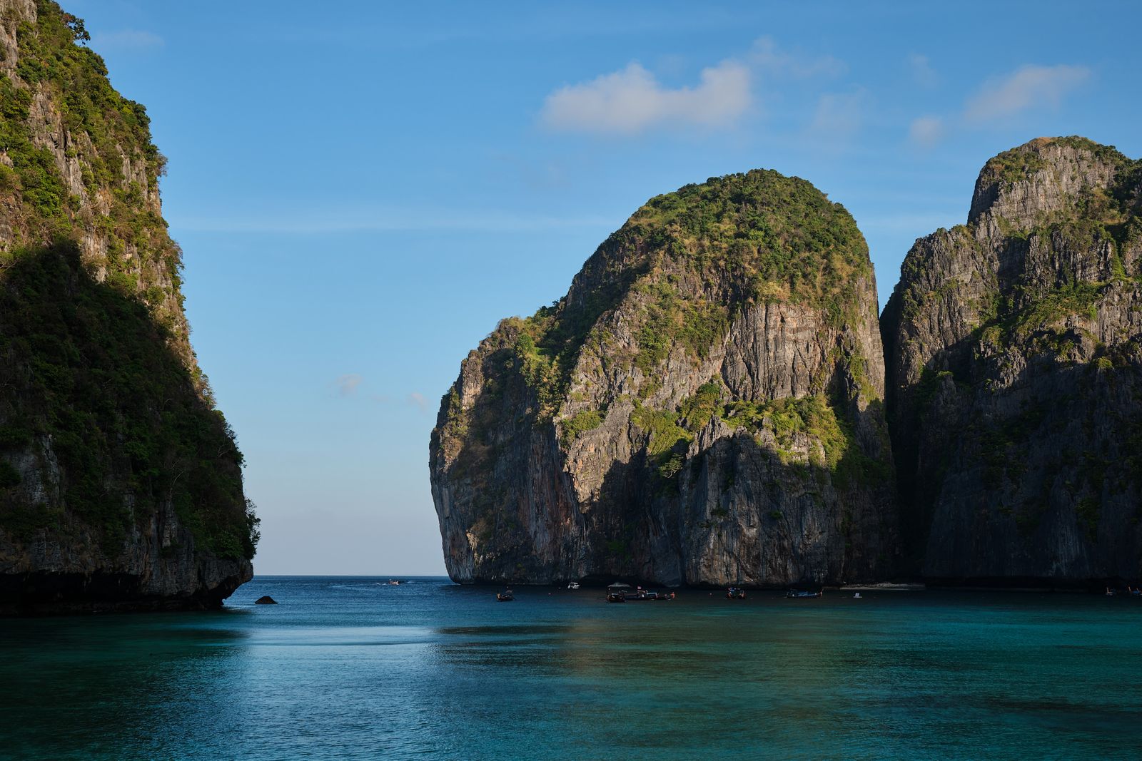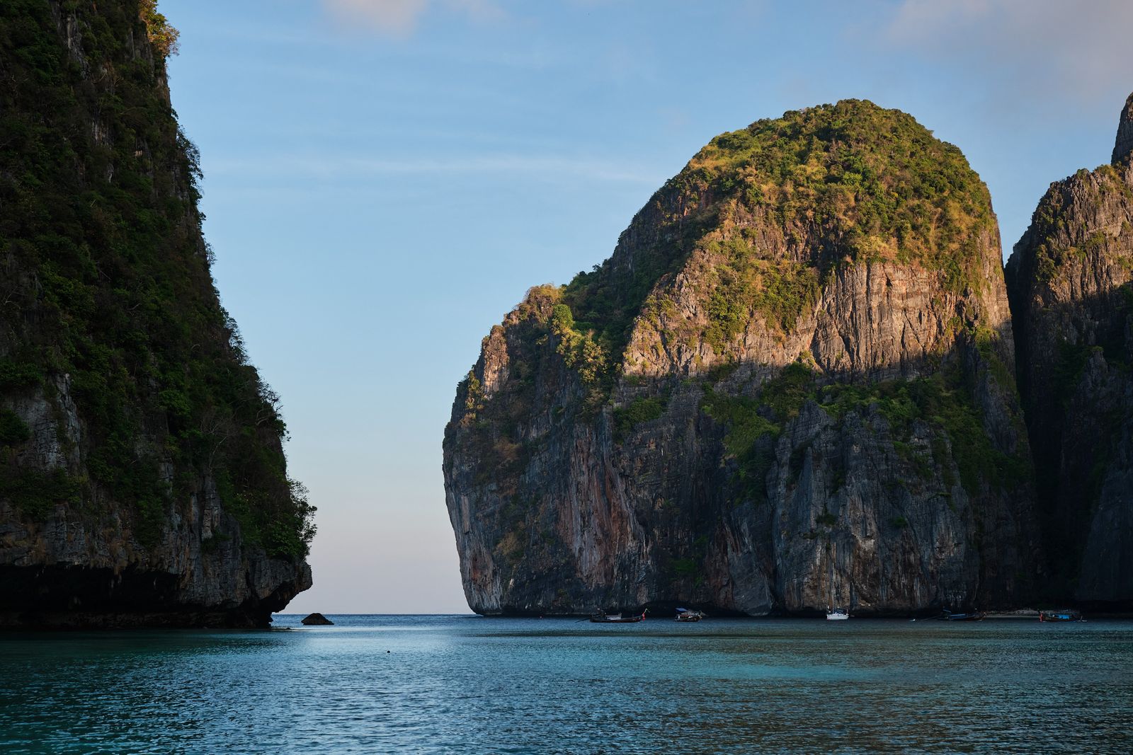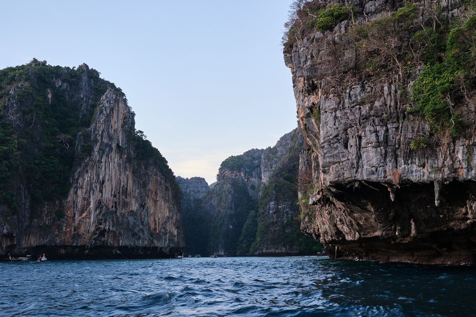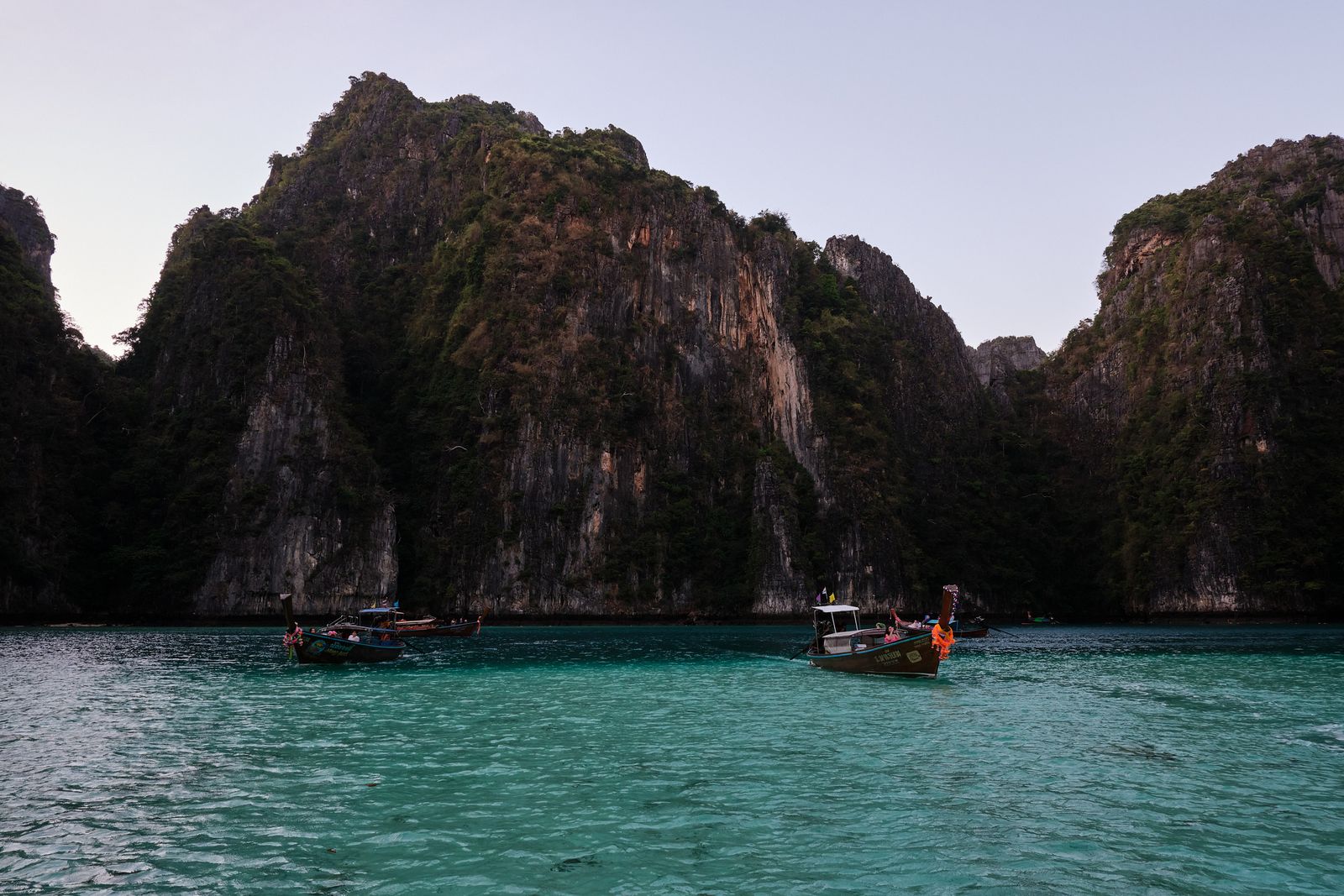Maya Bay is a national park and was closed for years to recover from overtourism. It’s open again now, but with strict rules to keep it from getting wrecked all over again. The rules are clearly posted on a massive sign when you enter. No swimming, no drones, no climbing rocks. Pretty straightforward. But, you know, people.