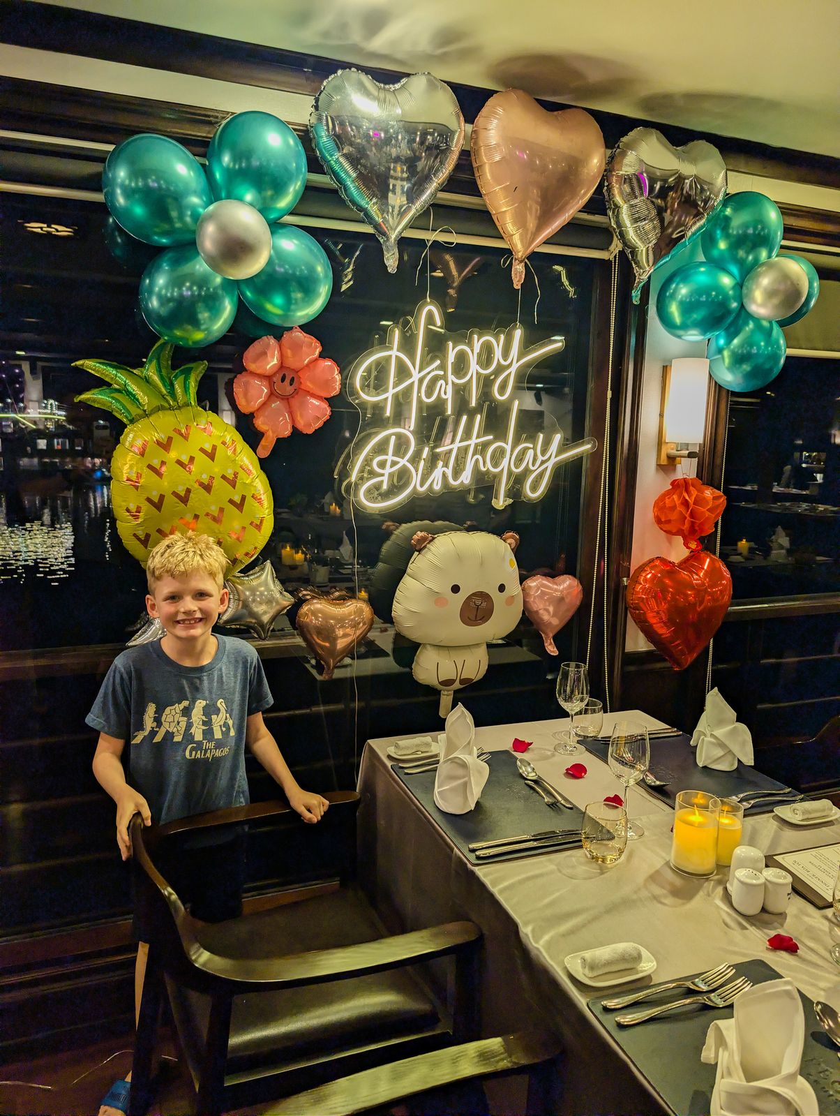 The first day of the cruise also happened to be Teddy’s 8th birthday. At dinner, the staff decorated our table and after we finished eating, they brought out a cake and had the whole dining room sing Happy Birthday. He was slightly mortified, which of course made it even better, but it was incredibly thoughtful.