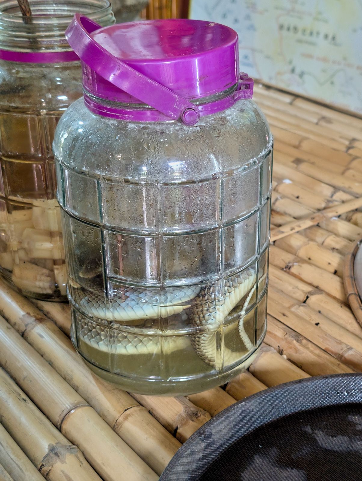 Our expedition took us to Cat Ba Island. It was about a two-hour boat ride there and two hours back. Once we docked, we did a short bike ride to a small village. In the village, we stopped at a restaurant that proudly displayed snake wine. For those who don’t know, that’s rice wine with an actual dead snake marinating inside the bottle. I did not try it. I felt like our family had already met its vomiting quota for the trip.